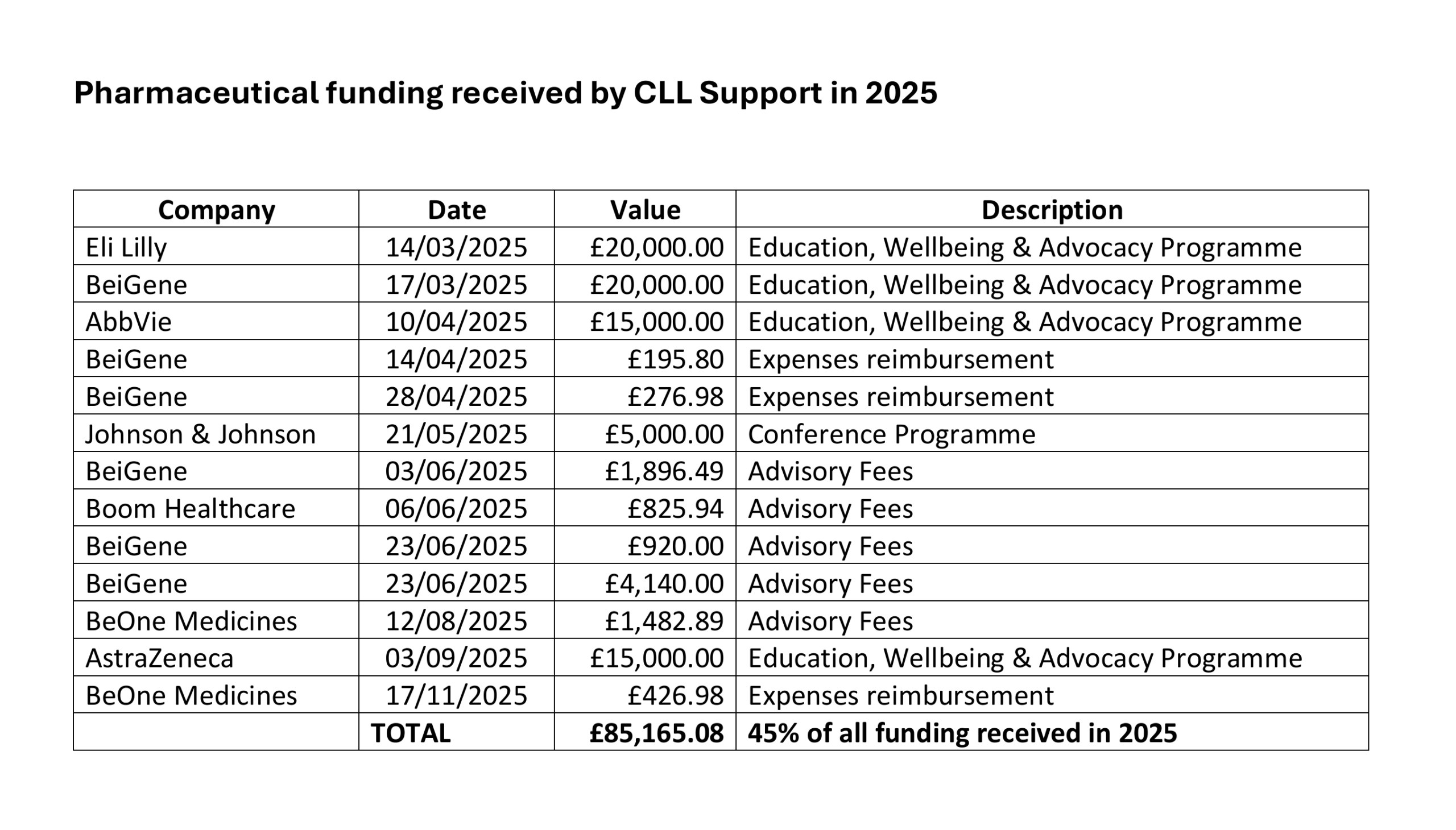 Funding, in the main, comes from the following sources, and all help to boost CLL Support income: